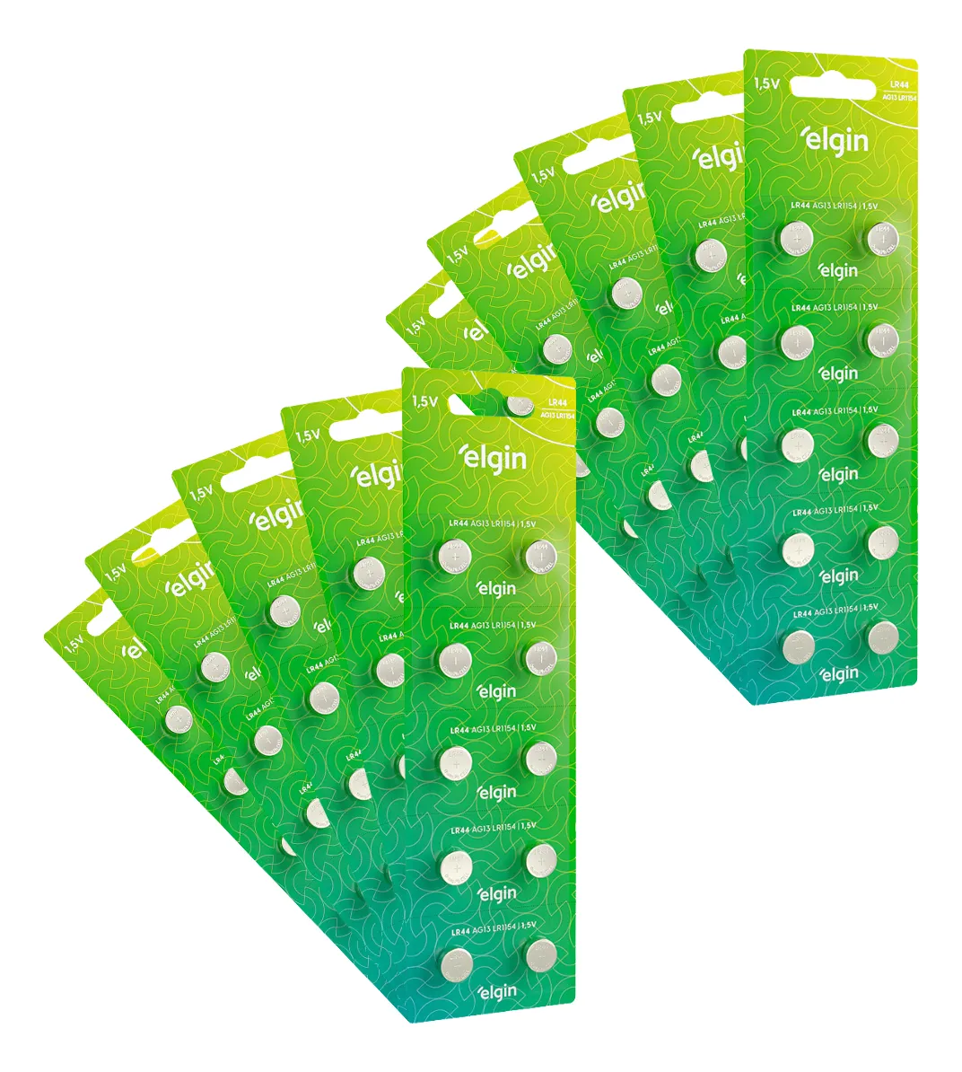 100 Baterias Alcalina Lr44 Elgin Botão 10 Cartelas C/ 10 Uni