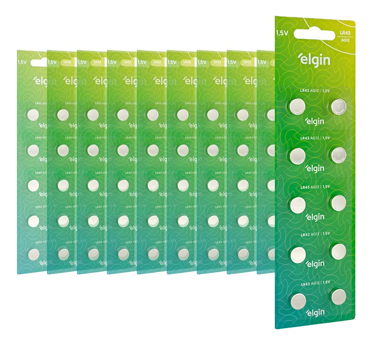 100 Baterias Alcalina Lr43 Elgin Botão- 10 Cartelas C/10 Uni