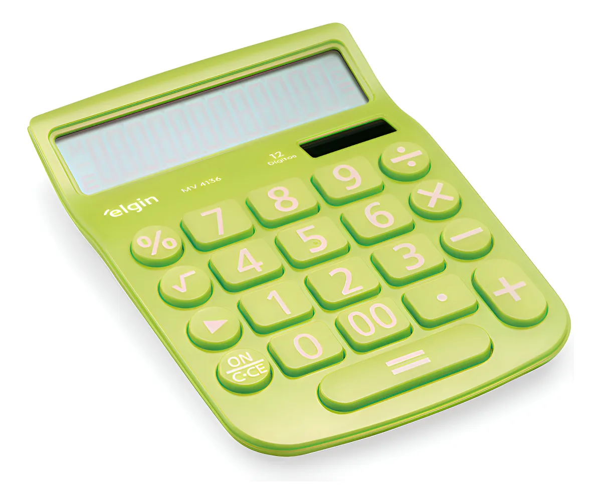 Calculadora Verde Mv 4136 Visor 12 Dig. Display Lcd Elgin Verde