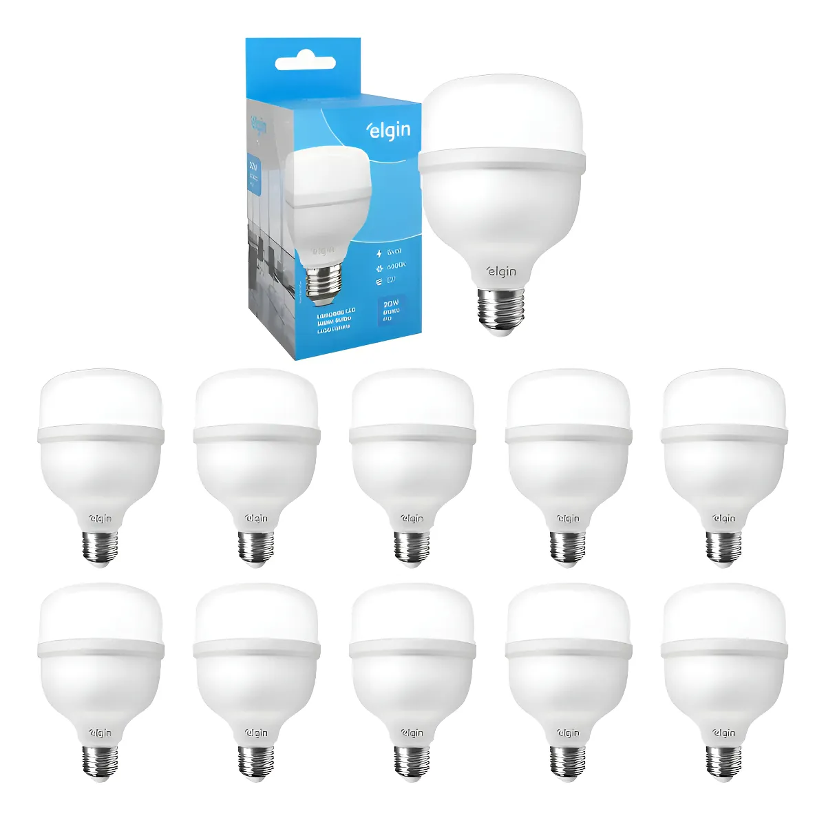 Kit 2 Lâmpadas Super Bulbo Alta Potência Led 20w 6500k Elgin 127/220v Branco-frio