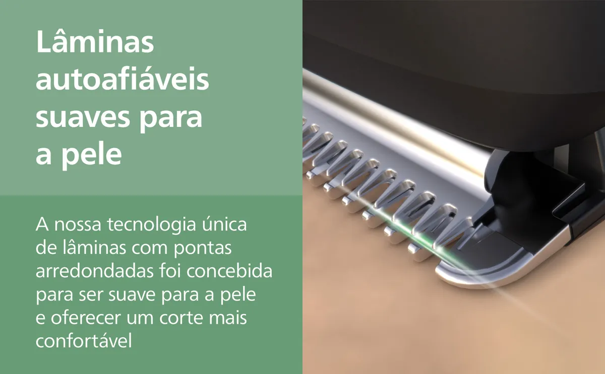 O Multigroom Philips MG3917/15 foi desenvolvido para durar: suas lâminas em aço inoxidável protegem a pele contra irritações, são auto afiáveis e não precisam ser lubrificadas, mesmo após anos de uso.