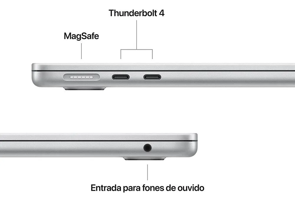 Apple Macbook Air 13″, M4, com CPU de 10 núcleos, GPU de 10 núcleos, 16GB RAM, 512GB SSD – Prata