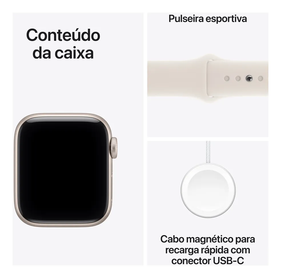 Apple Watch SE 3 GPS • Caixa estelar de alumínio – 44 mm • Pulseira esportiva estelar – M/G – Distribuidor Autorizado