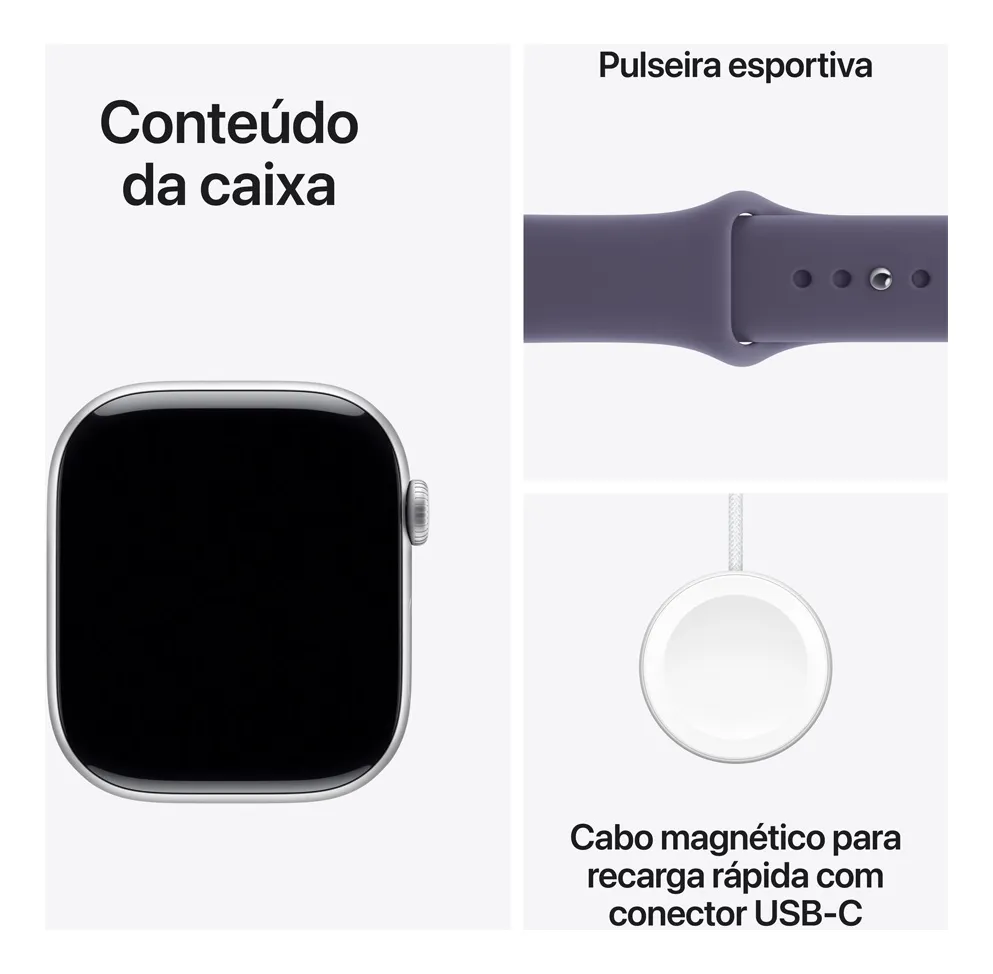 Apple Watch Series 11 GPS – Caixa prateada de alumínio – 46 mm – Pulseira esportiva roxo-névoa – P/M
