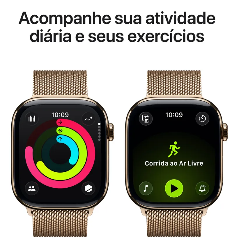 • UM PARCEIRO DE TREINO PODEROSO — Acompanhe métricas avançadas para todos os seus exercícios e tenha recursos como Marcador de Ritmo, Zonas de Batimentos Cardíacos, carga de exercício e muito mais. O Apple Watch Series 11 também vem com três meses grátis de Apple Fitness⁺⁷.