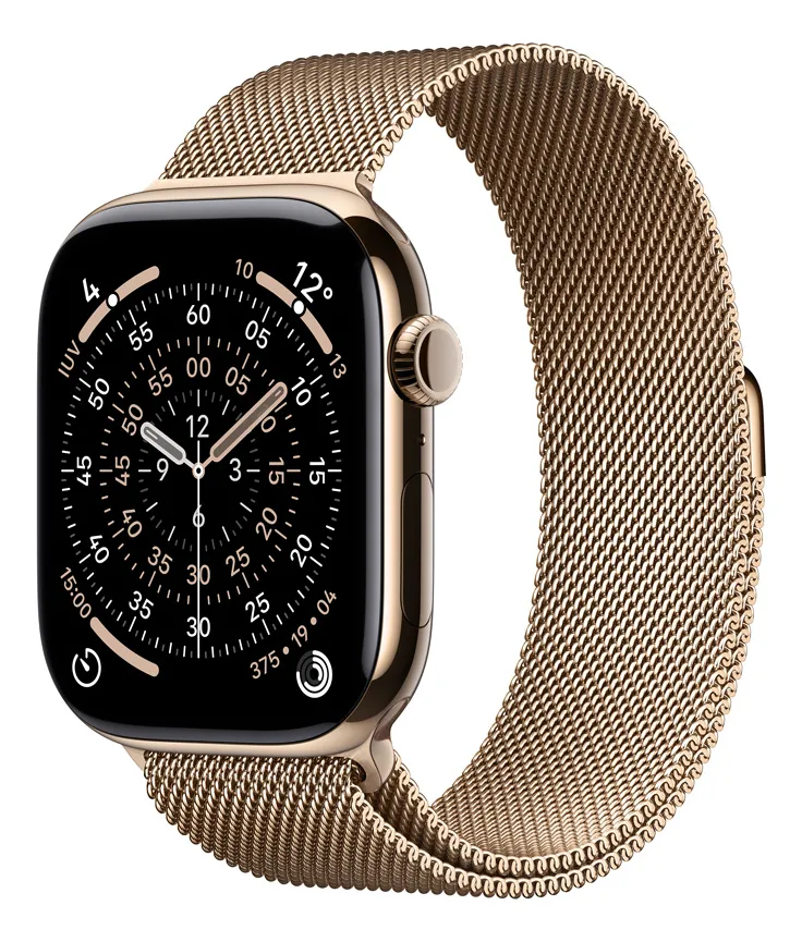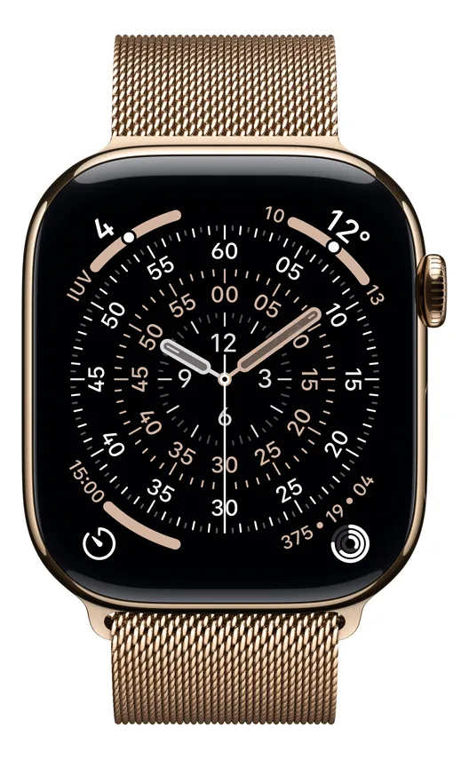 Apple Watch Series 11 GPS + Cellular – Caixa dourada de titânio – 46 mm – Pulseira dourada estilo milanês – P/M