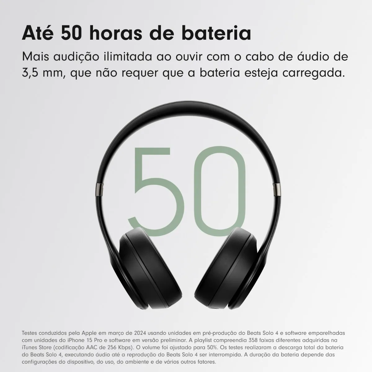 Bateria: até 50 horas de reprodução, Fast Fuel (10 minutos de carga = 5 horas de uso)