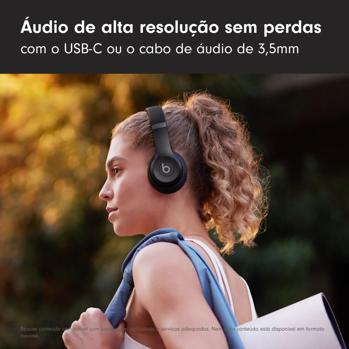 Áudio Lossless via USB-C ou cabo de 3,5 mm (uso sem bateria via cabo).