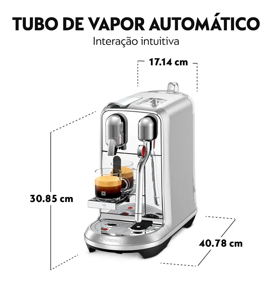 Leve a arte do café para sua casa com a Máquina de Café Nespresso Creatista Plus 110V. Projetada para amantes de café que valorizam sofisticação e tecnologia, esta cafeteira elétrica premium combina acabamento em aço inoxidável com funcionalidades avançadas, proporcionando uma experiência de café profissional e personalizada.
