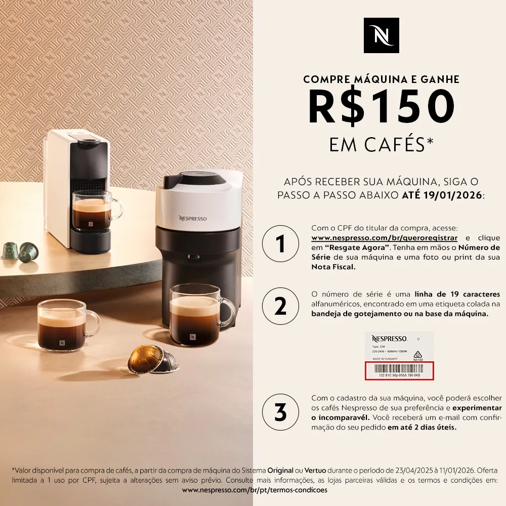 Com seis tamanhos de xícara – de Ristretto a Alto e Receitas Geladas – basta escolher sua cápsula Vertuo, inseri-la, e em um toque de botão, seu café está pronto.