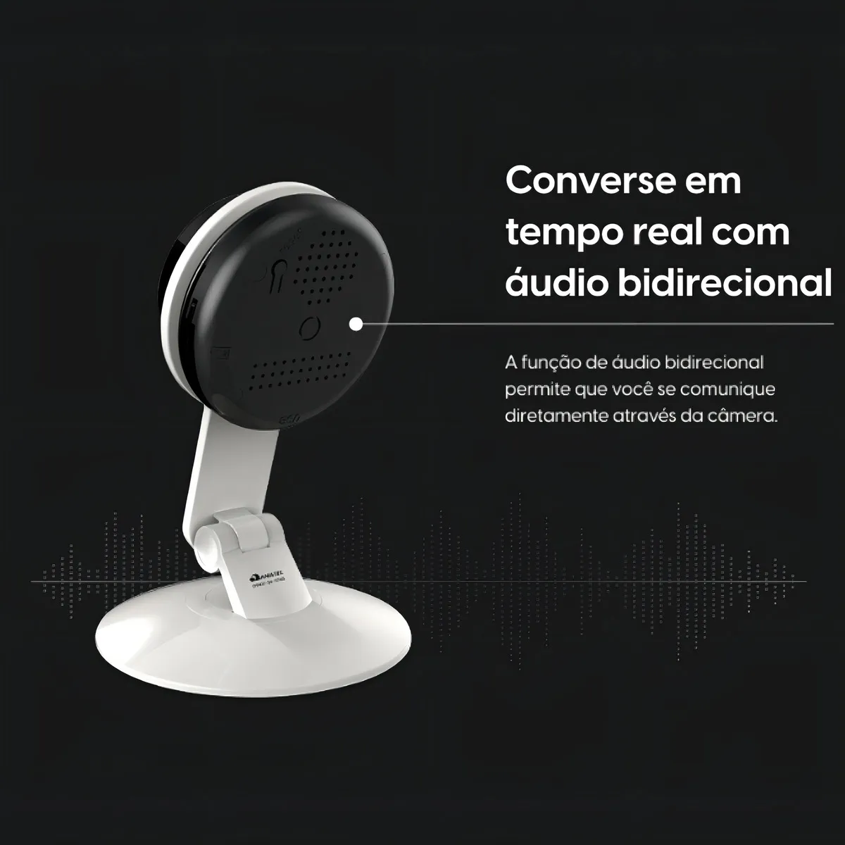 Equipada com áudio bidirecional, microfone e alto-falante integrados, possibilita comunicação remota em tempo real. A conexão sem fio via Wi-Fi 2,4GHz oferece praticidade na instalação. Conta com detecção de movimento e amplo ângulo de visão, além de suporte para armazenamento local por cartão MicroSD e gravação contínua 24 horas por dia, 7 dias por semana.