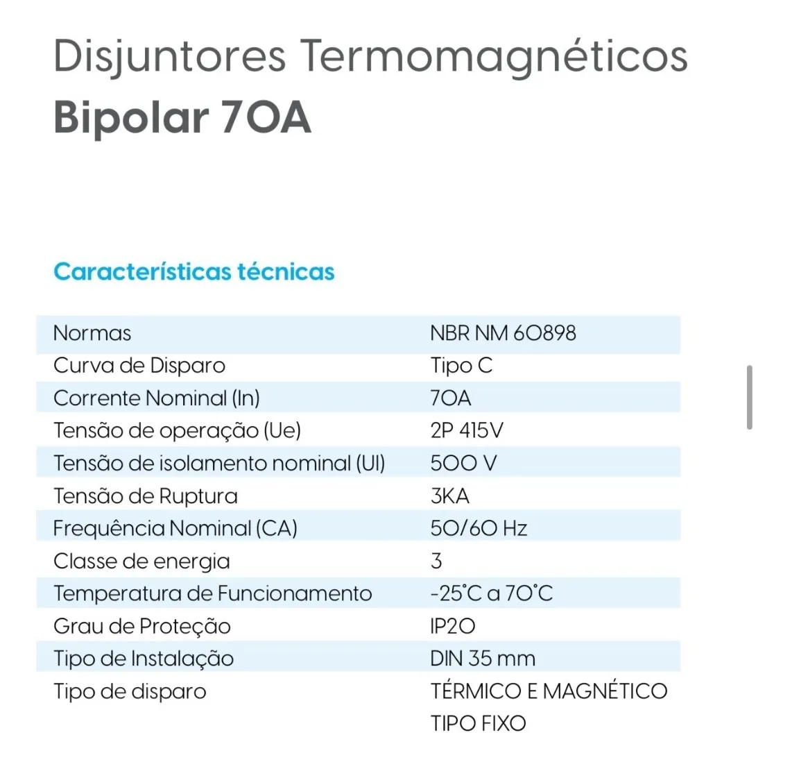 Seja o primeiro a avaliar “Disjuntor Bipolar Elgin Curva C Duplo 2 Polos 70a Amperes”