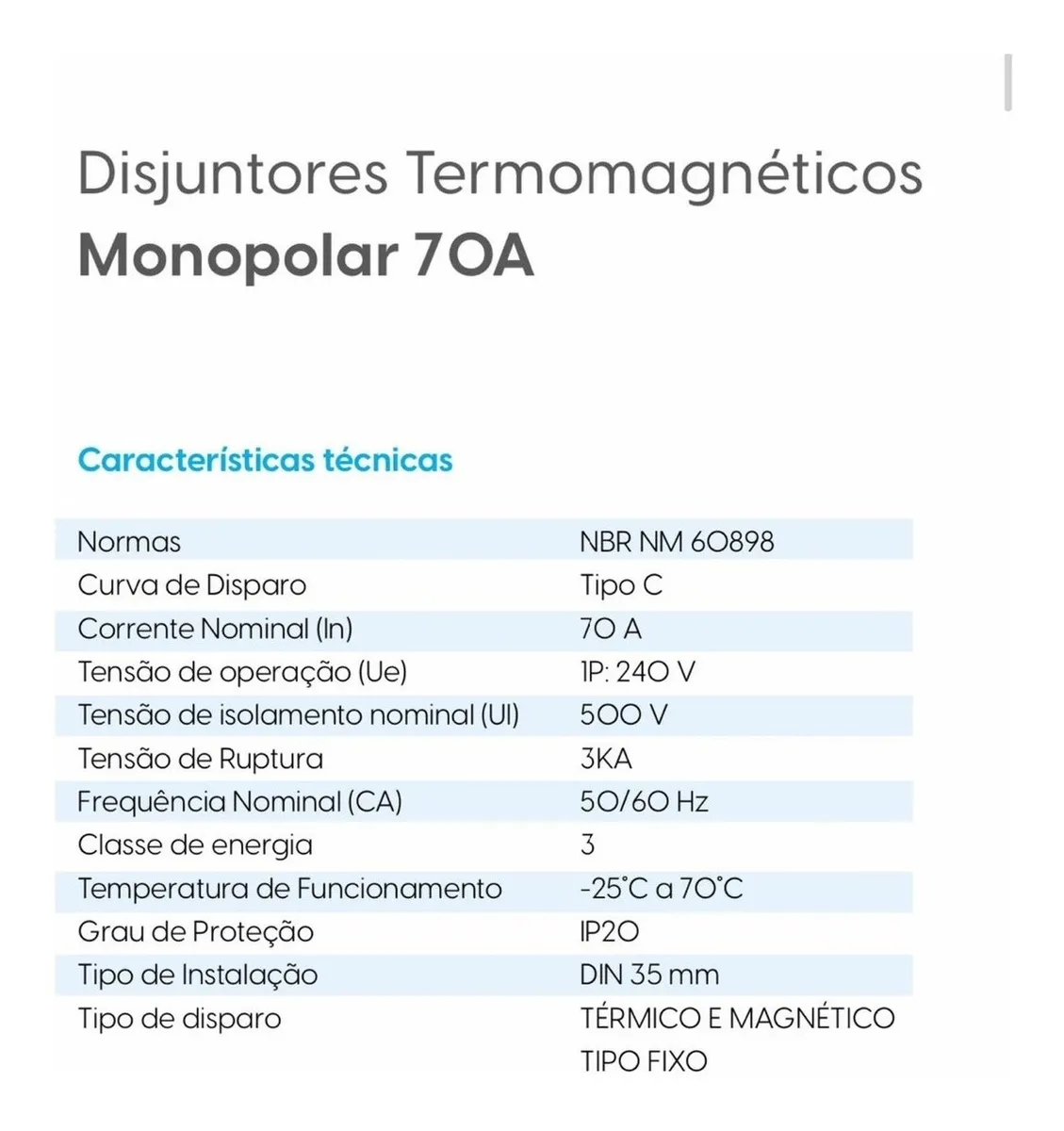 Disjuntor Monopolar Termomagnético 1 Polo 70a – Elgin
