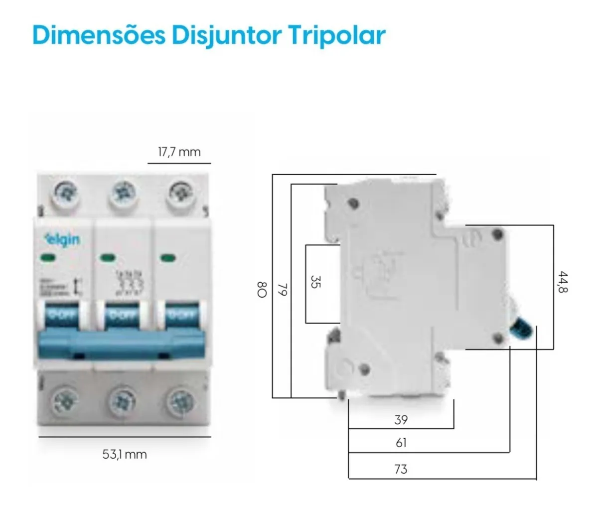 Disjuntor Tripolar Elgin 6a 10a 16a 20a 25a 32a 40a 50a 63a 63a