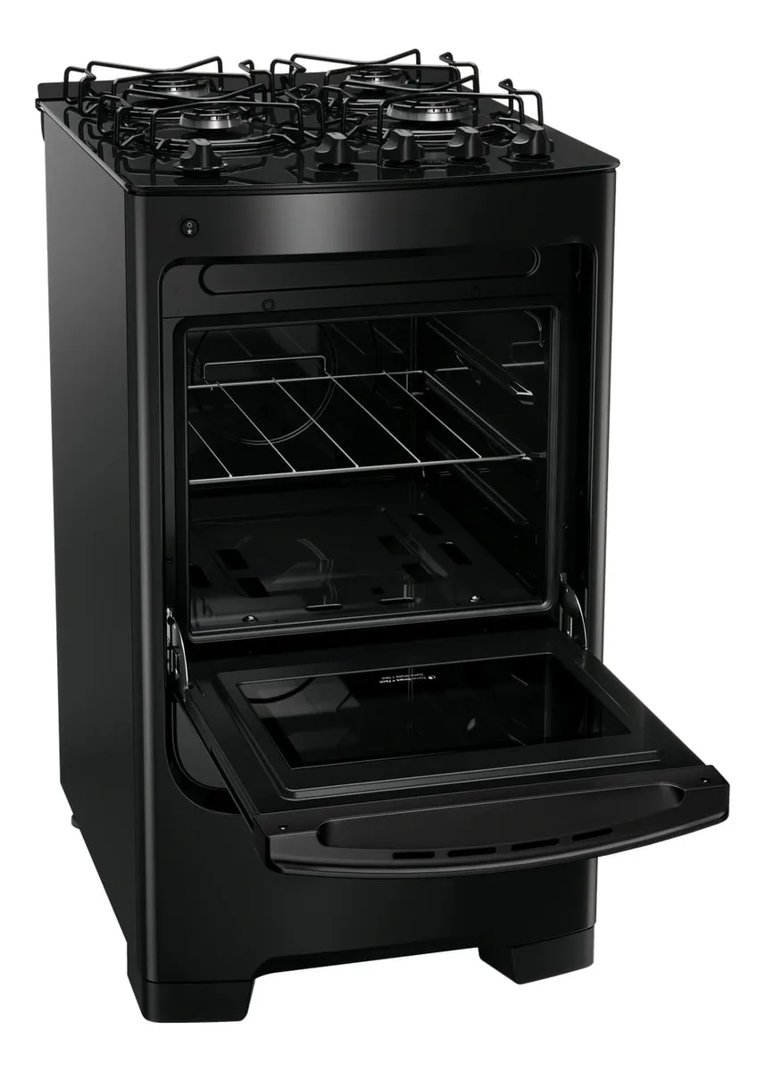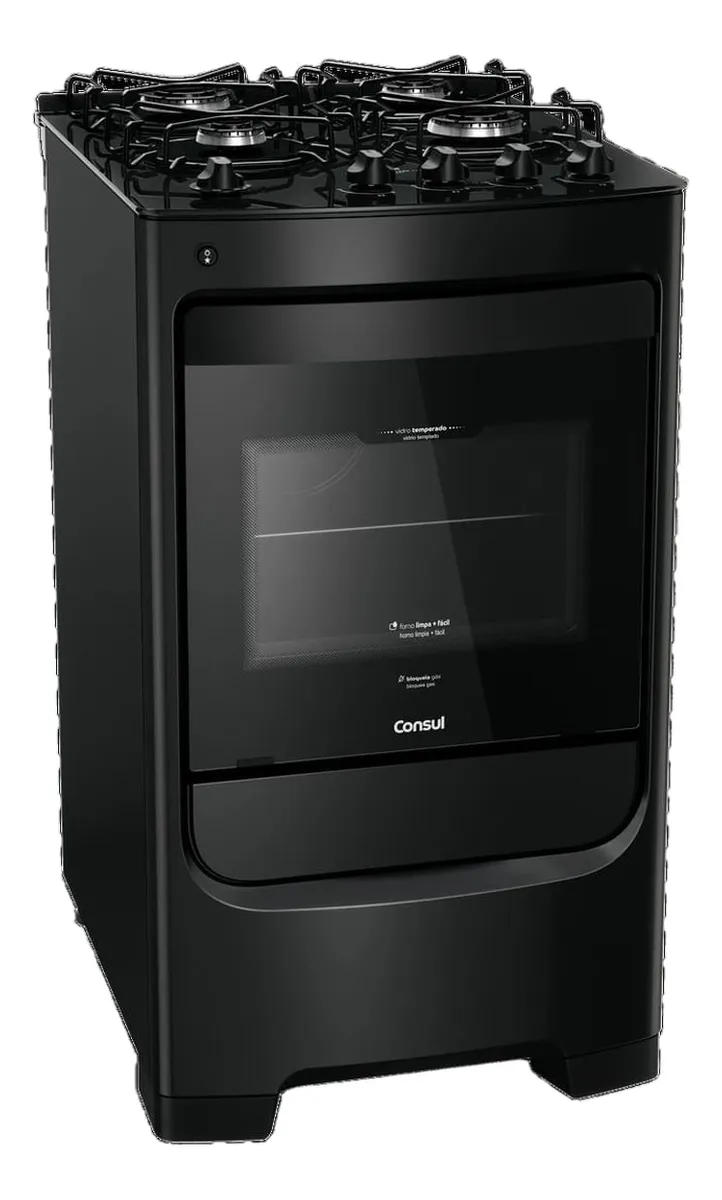 Quer um fogão que deixe sua cozinha mais bonita e sua rotina mais fácil? O Fogão Consul 4 bocas preto foi pensado para ser moderno e, acima de tudo, prático. A mesa de vidro dá um toque de sofisticação e não tem complicação na hora de limpar, garantindo mais velocidade nos preparos do dia a dia. As grades individuais dão mais firmeza e segurança para suas panelas, e o forno tem um ótimo desempenho para deixar seus pratos no ponto certo. E como a segurança da sua família vem em primeiro lugar, ele tem quinas não cortantes para evitar acidentes e uma válvula que corta o gás em caso de vazamento. É a Consul com soluções bem pensadas para descomplicar sua vida na cozinha. Bem pensado, né?
