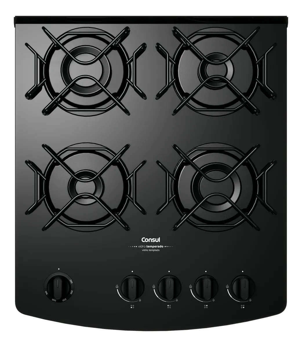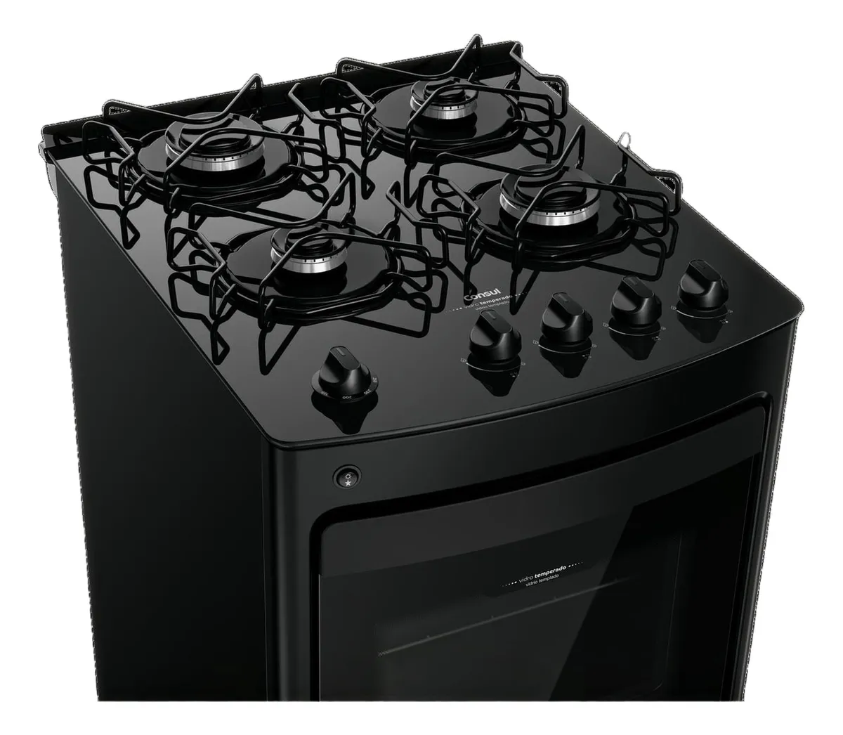 Fogão Consul 4 Bocas Preto com Mesa de Vidro e Grades Individuais Super Estáveis – CFO4VBE