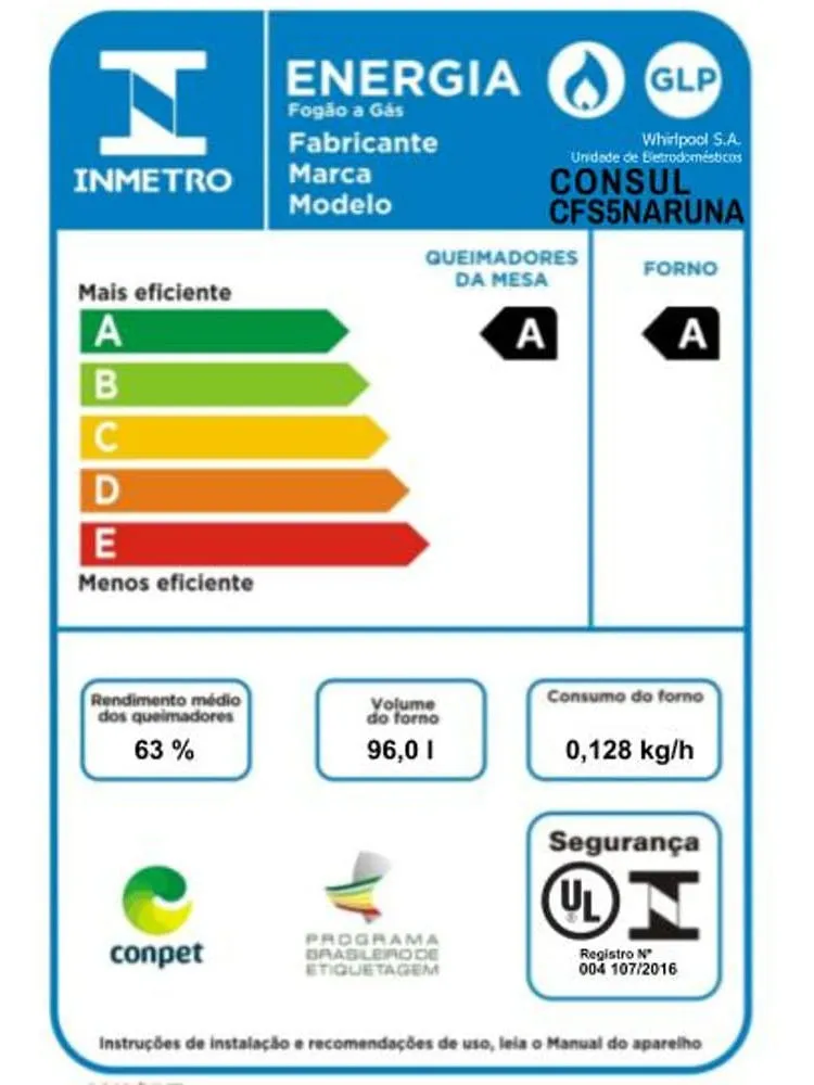 “Grande, bonito e eficiente O fogão de piso Consul de 5 Bocas é grande, prático e muito bonito. Além de chamas potentes e um forno espaçoso e eficiente, o fogão foi muito bem pensado para facilitar o dia a dia e você não precisar perder tempo com limpeza. Por isso, ele tem mesa de inox, grades duplas e botões removíveis, além de forno com paredes lisas e vidro interno vedado para não acumular sujeiras.”