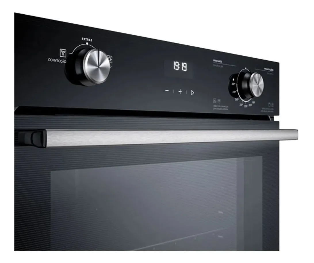 Esse forno também conta com Timer Digital que programa o tempo de cocção desejado e ao término do preparo, emite um aviso sonoro, além da Função Gratinar e Dourar que te permite atingir melhores resultados de textura e crocância em suas receitas.