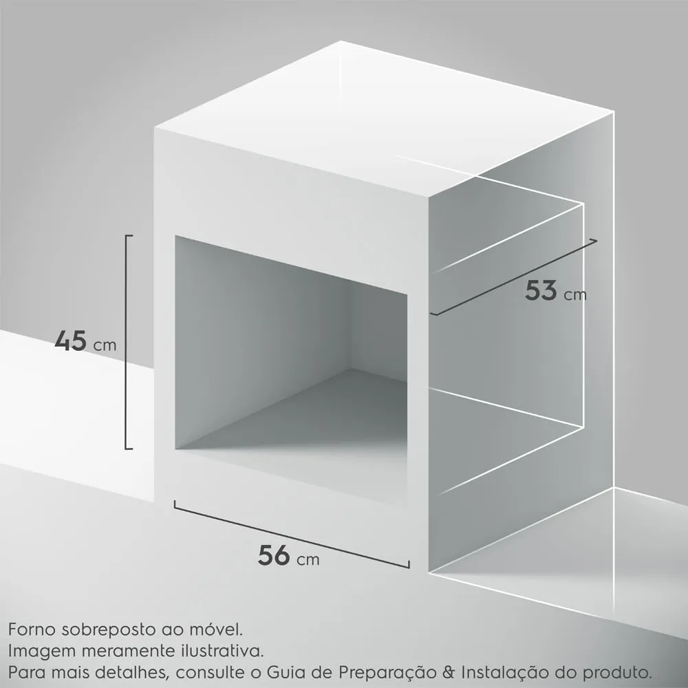 Esse forno também conta com a Função Manter Aquecido, responsável por manter os alimentos sempre na temperatura ideal antes de servir, além do Timer Mecânico, que desliga o forno automaticamente de acordo com o tempo programado, oferecendo tranquilidade e segurança a cada preparo.
