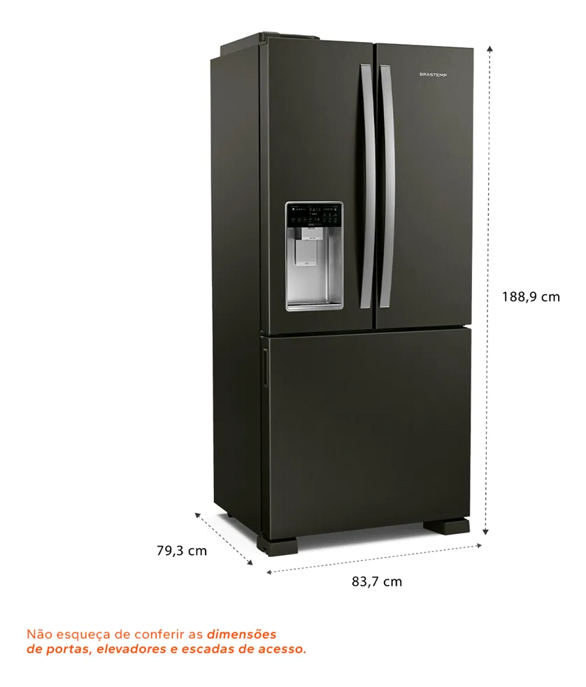 Geladeira Brastemp Frost Free French Door Água E Gelo Na Por Cor Black inox
