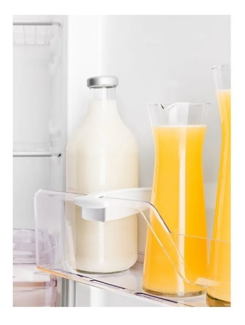 A prateleira porta-latas é reversível e acomoda 5 unidades, melhorando o aproveitamento interno do refrigerador.
