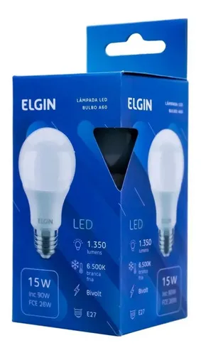 Kit 05 Lâmpadas Bulbo Led Elgin A60 15w 6500k Branco Cor da luz Branco-frio
