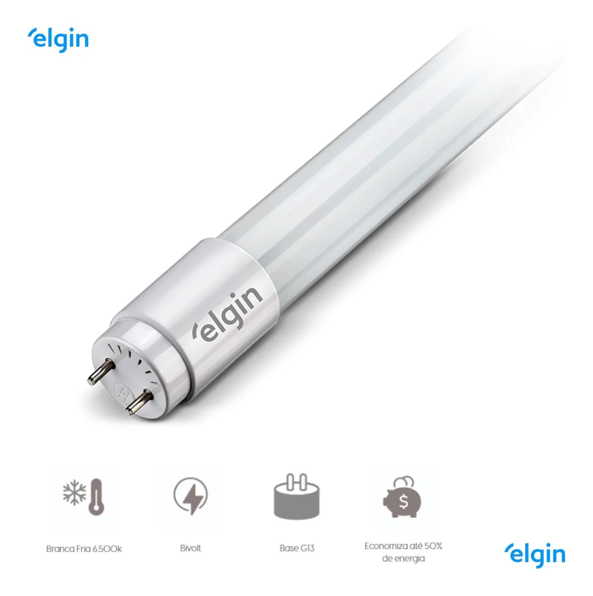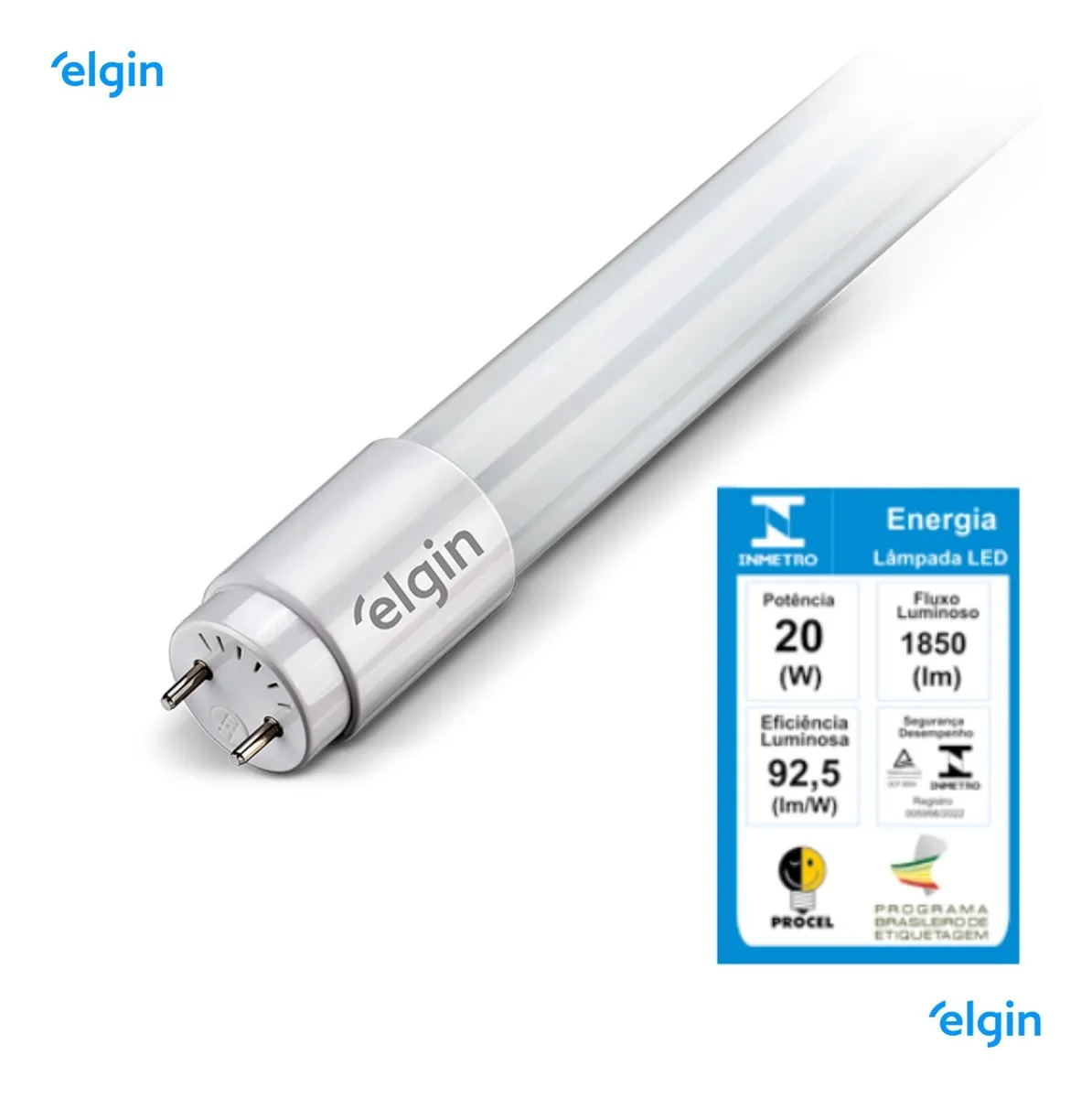 Kit 10 Lâmpadas Led Tubular T8 120cm 20w Bivolt 6500k Elgin 127/220v Branco-frio