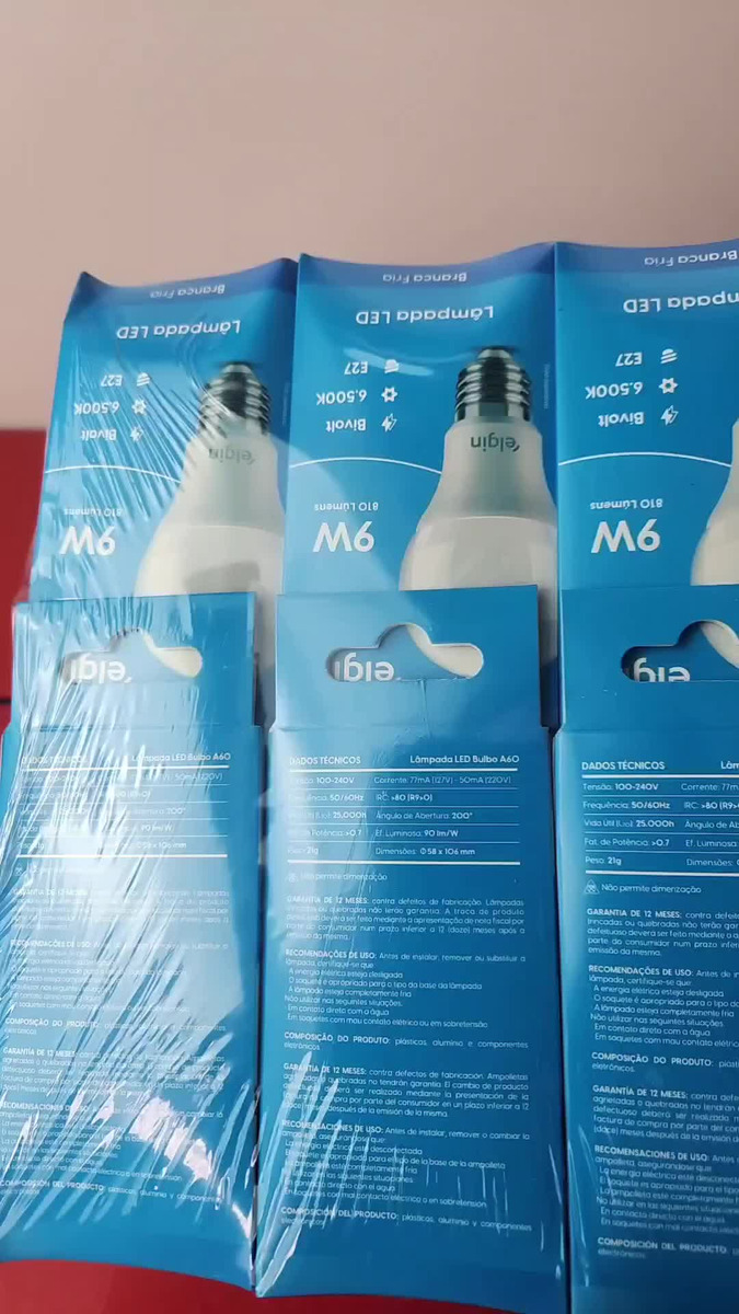 LAMPADA LED, TIPO A60, EMBALAGEM TIPO CAIXA, COM DISPOSITIVO DE CONTROLE INCORPORADO A BASE, MATERIAL EMPREGADO PLASTICO TIPO PC, DISSIPADOR DE ALUMINIO, LED E COMPONENTES ELETRÔNICOS, POTENCIA DE 9 WATTS, TENSAO DE 100-240 VOLTS, FLUXO LUMINOSO DE 810 LUMENS, EFICIENCIA DE 90 LM/W, TEMPERATURA DE COR DE 6500 KELVIN, BASE E27, MARCA ELGIN, REF. 48BLED2F09YU, REGISTRO INMETRO 000743/2020 E COD. DE BARRAS 7897013586231