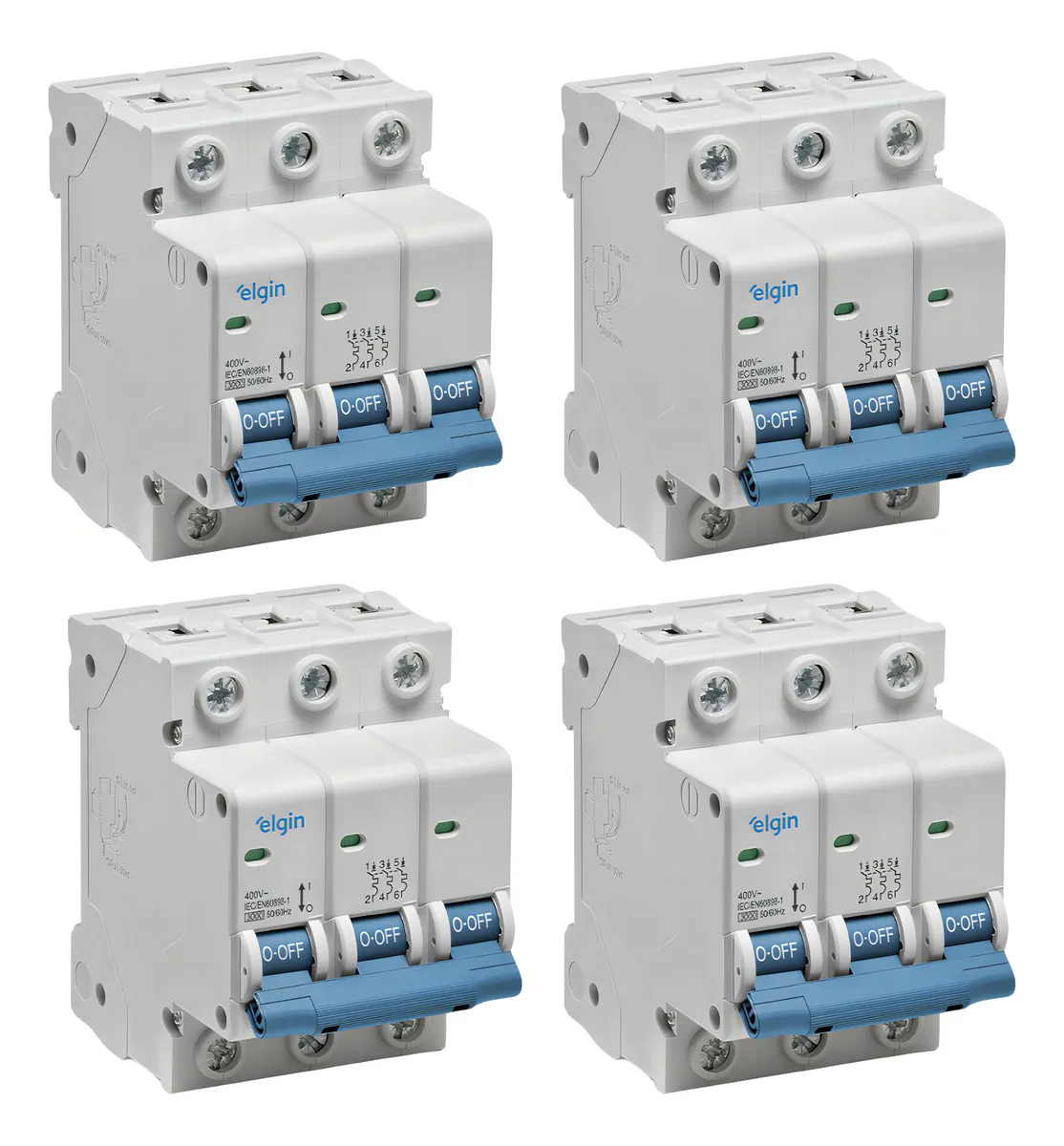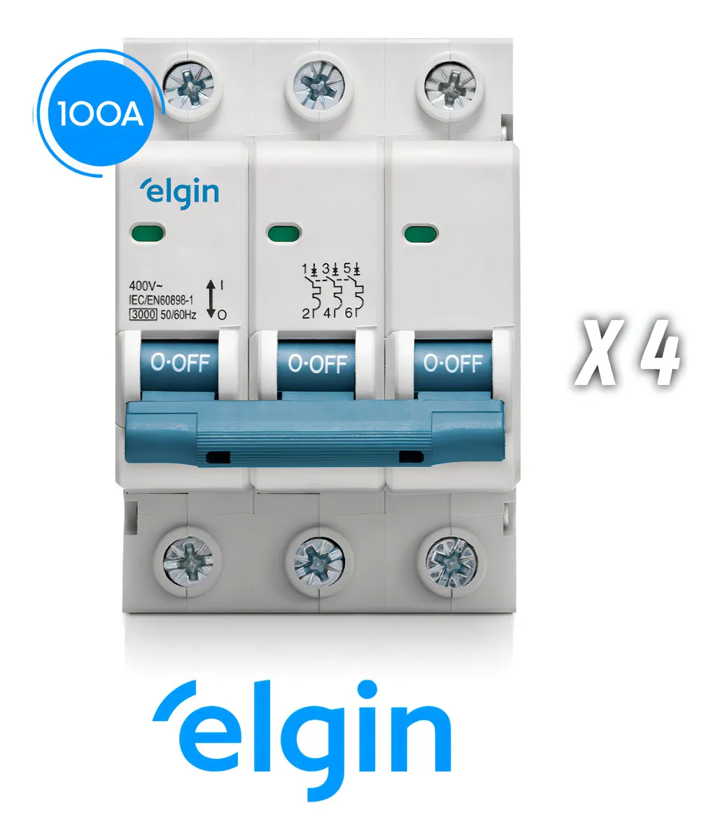Kit 4 Disjuntores Tripolar 3 Polos 100a Termomagnético Curva C Elgin