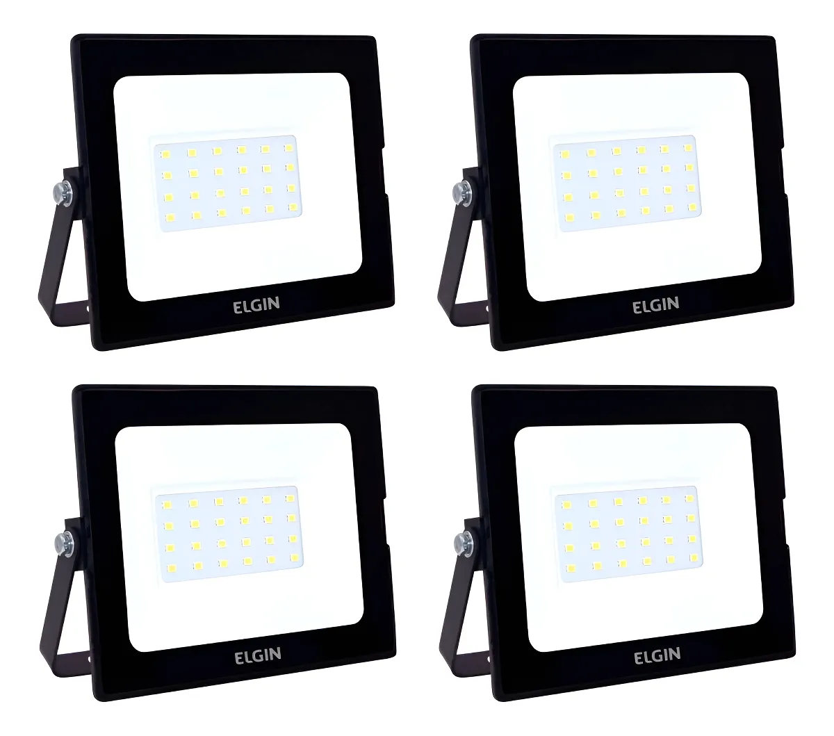 Kit 4 Refletores Elgin 30w Led Branco Frio 6500k Bivolt 127/220v Preto Branco-frio