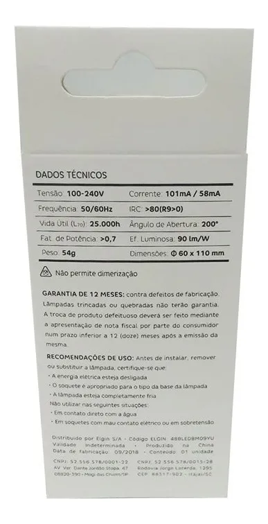 • Modelo: Lâmpada LED Bulbo 9W