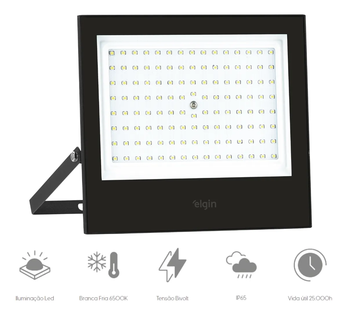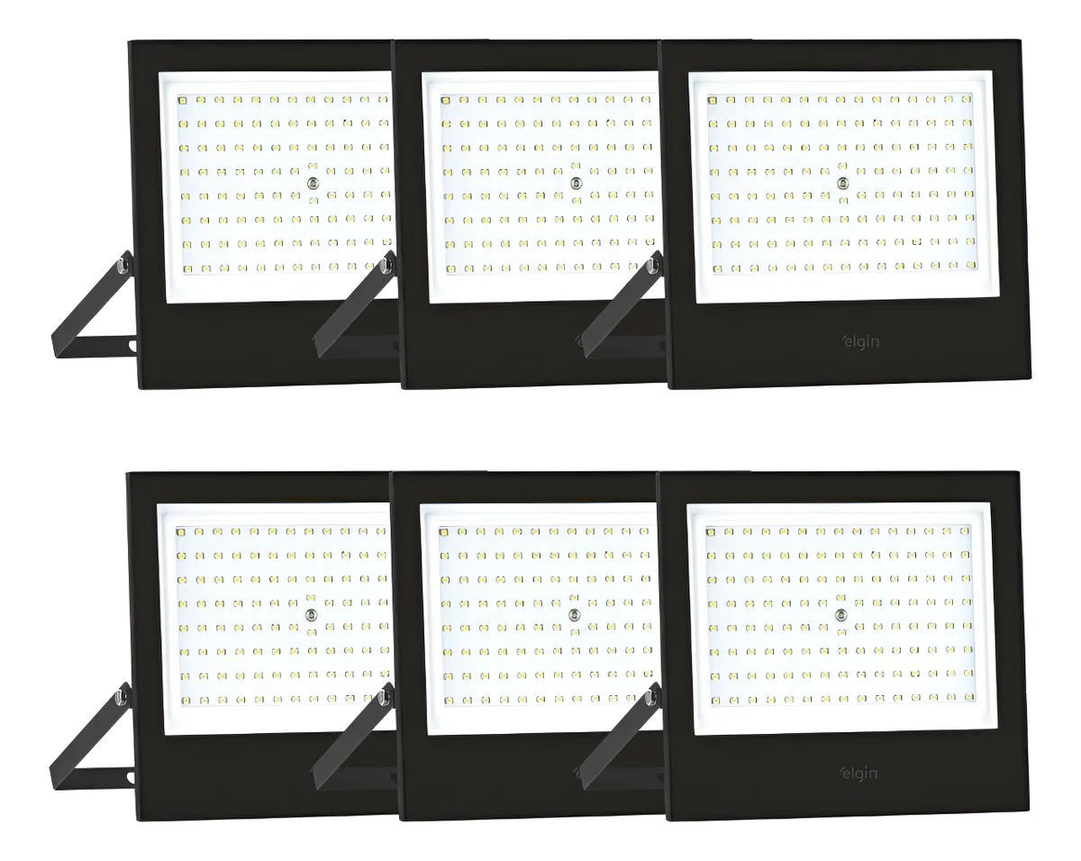 Kit 6 Refletor Elgin 200w Led Branco Frio 6500k Bivolt 127/220v Preto Branco-frio