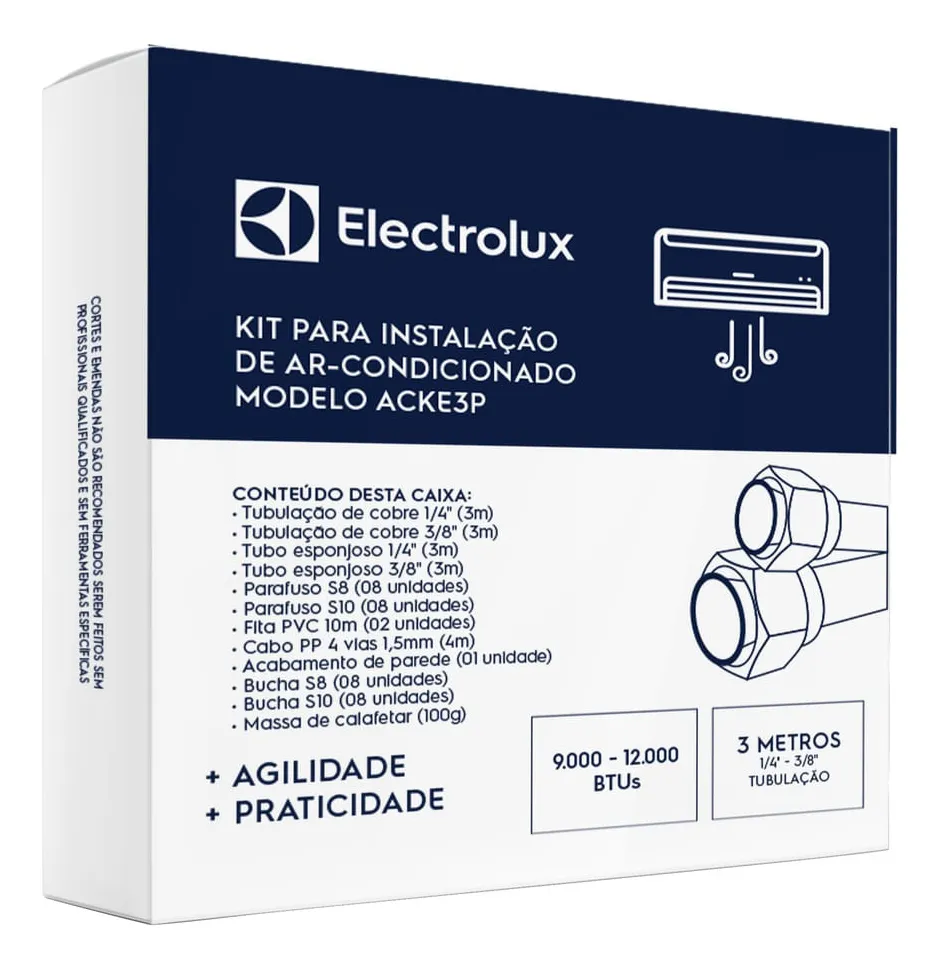 Compatíveis com Splits de 9.000 a 12.000 BTUS, para instalações de 3m de distância;