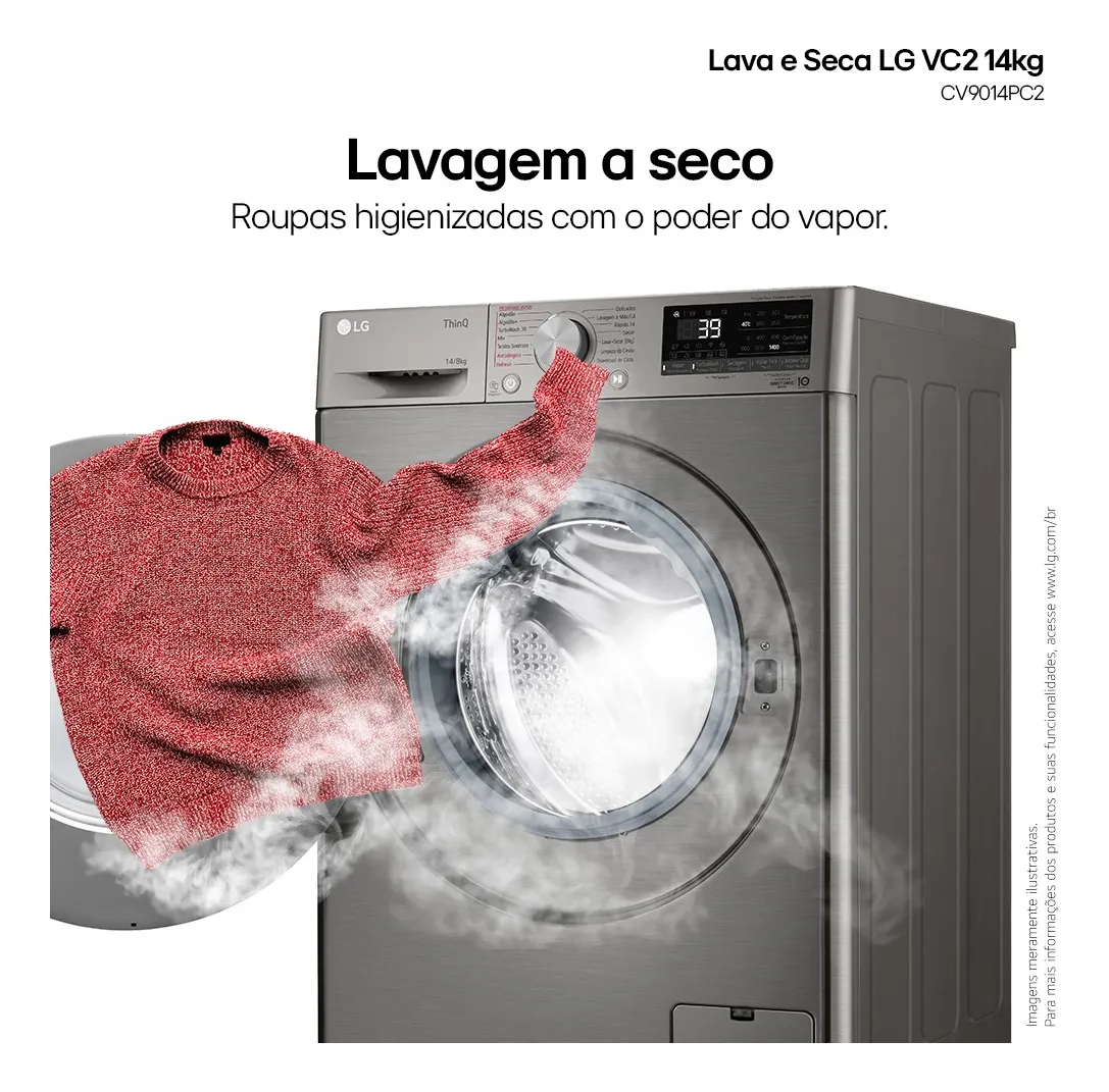 Lava e Seca LG Smart VC2 14kg Inox Look com Inteligência Artificial AIDD™ (CV9014PC2) – 127v