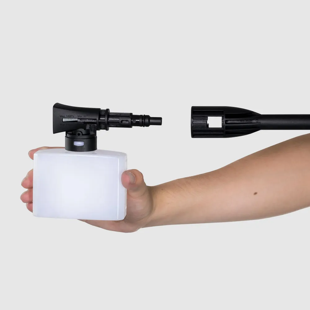 Com 1500PSI de pressão, a Lavadora ajuda na remoção das sujeiras mais difíceis do seu carro, casa, quintal, garagem, e muito mais. Acompanha uma Lança de Jato Reto regulável e um canhão de espumas que facilita a remoção da sujeira, economizando tempo e água em comparação com uma mangueira de jardim convencional.