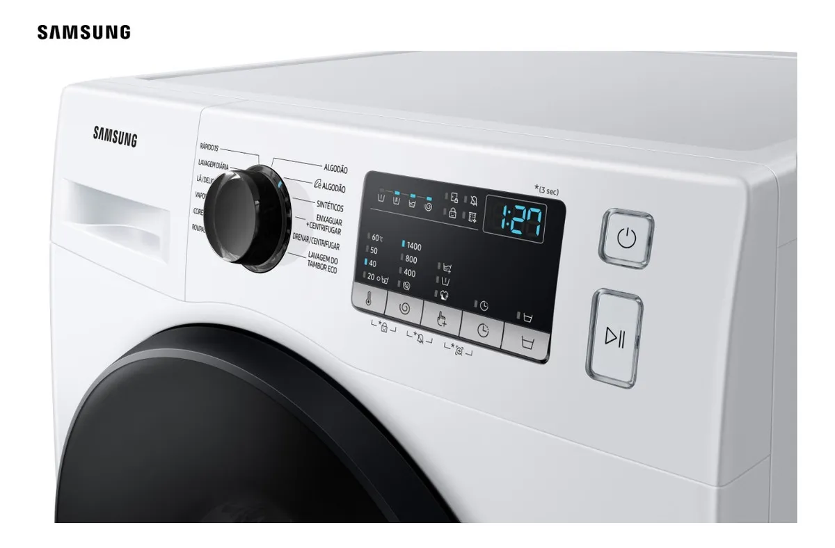 Lavadora Digital Inverter Samsung Porta Black WW11T Branca 11kg