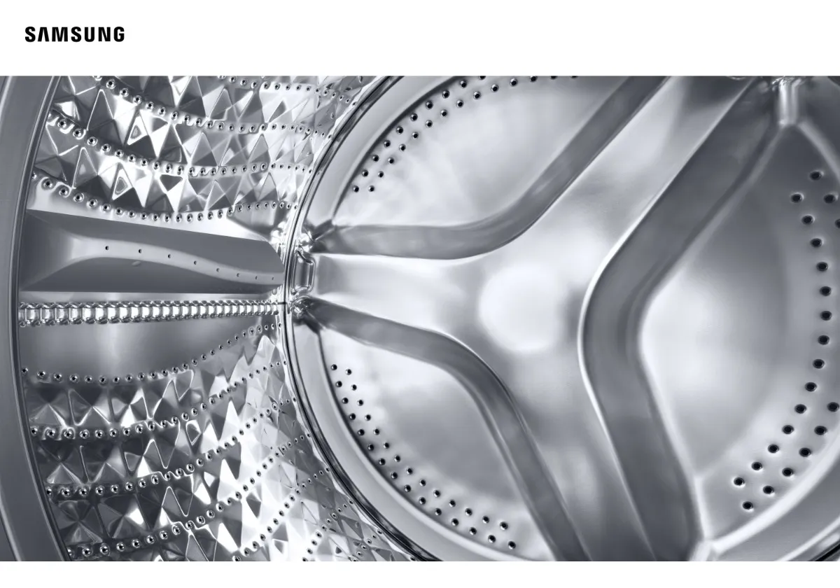 O design em forma de diamante do tambor da lavadora Samsung é delicado com as suas roupas. Seus pequenos orifícios para escape da água também ajudam a proteger os tecidos, reduzindo o atrito e prevenindo que suas roupas desfiem durante a lavagem.
