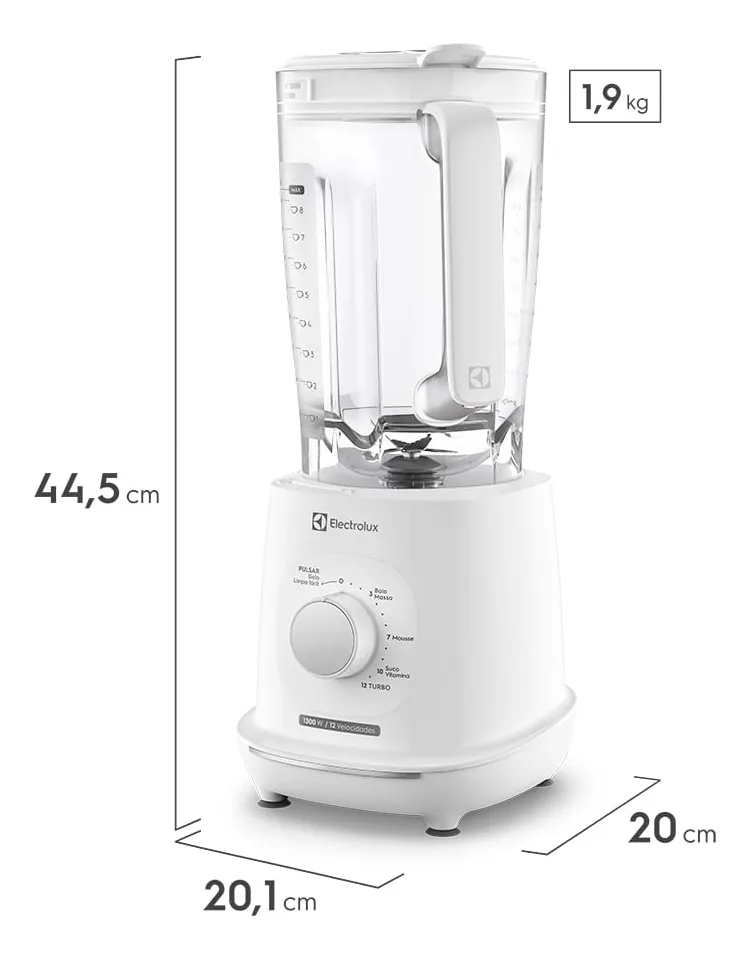 Prepare-se para revolucionar sua cozinha com o Liquidificador Electrolux 1300W 3,2L Efficient com TriForce 12 Velocidades Branco (EBL1310).