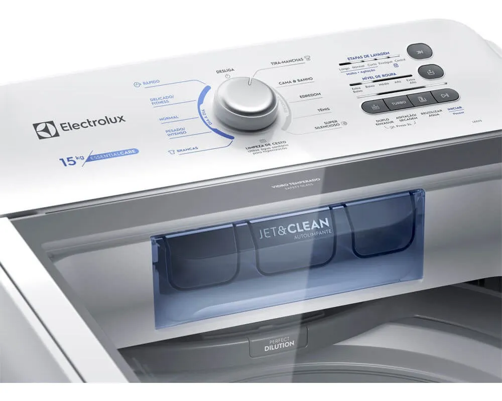 A Máquina de Lavar 15 kg Electrolux Essential Care (LED15) possui Cesto Inox, Dispenser Jet&Clean e sistema Ultra Filter para facilitar a sua rotina e proporcionar o melhor cuidado com as roupas.