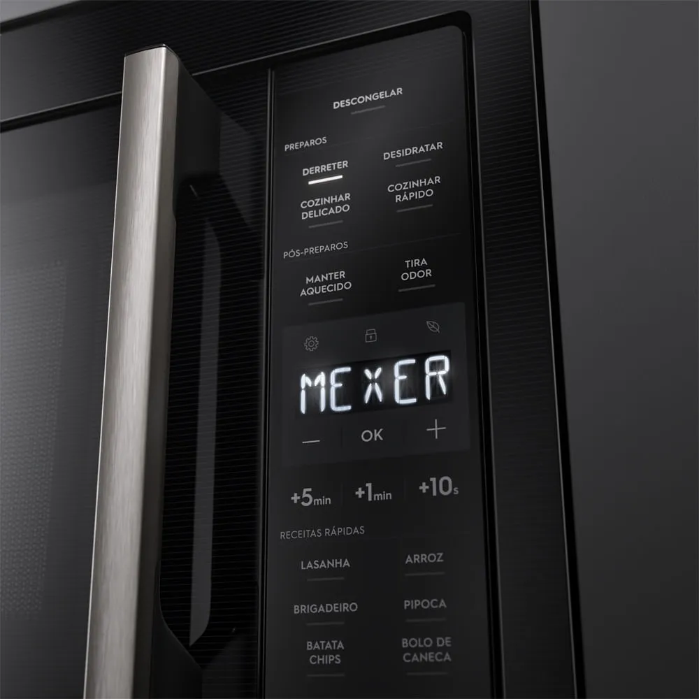 Esse produto também conta com a nova tecnologia de Descongelamento Assistido Electrolux, que oferece resultados melhores e mais uniformes no descongelamento dos alimentos, através das orientações “mexer” ou “virar” sinalizadas no painel.