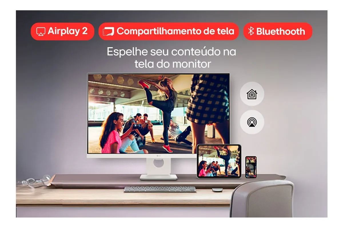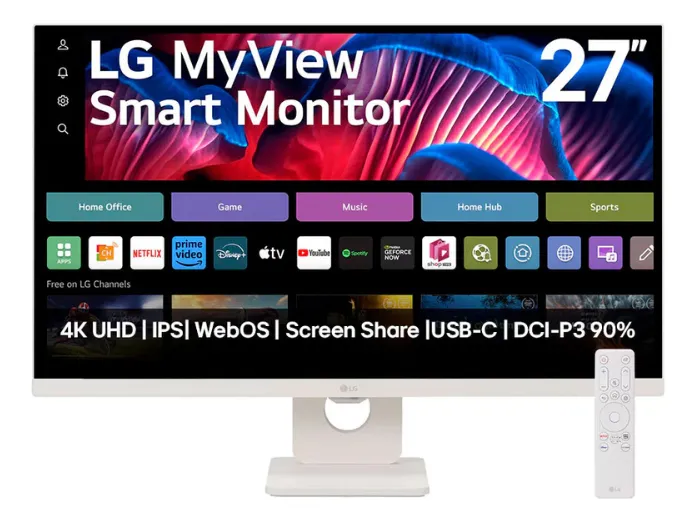 O LG MyView Smart Monitor 27SR73U-W redefine o conceito de produtividade e entretenimento com sua tela IPS 4K de 27 polegadas, oferecendo imagens nítidas e cores vibrantes. Equipado com o sistema operacional webOS, permite acesso direto a aplicativos de streaming como Netflix, Prime Video, Disney+ e YouTube, sem a necessidade de um computador. Sua conectividade inteligente inclui Bluetooth, Screen Share e AirPlay 2, facilitando o compartilhamento de conteúdos e integração com dispositivos móveis.