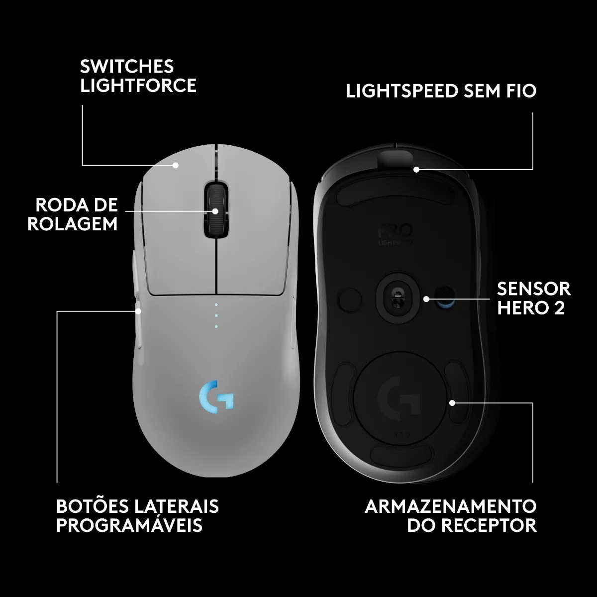 O mouse gamer sem fio Logitech G PRO 2 LIGHTSPEED foi desenvolvido para e com jogadores profissionais. Projetado para vencer e baseado em nosso modelo comprovadamente vencedor de campeonatos, ele apresenta o sensor HERO 2 de última geração, a estabilidade da tecnologia sem fio LIGHTSPEED com até 95 horas de duração da bateria e os interruptores LIGHTFORCE. Ícone do eSports, este mouse gamer foi otimizado para proporcionar ainda mais velocidade, precisão e estabilidade, permitindo que você atinja o desempenho máximo.
