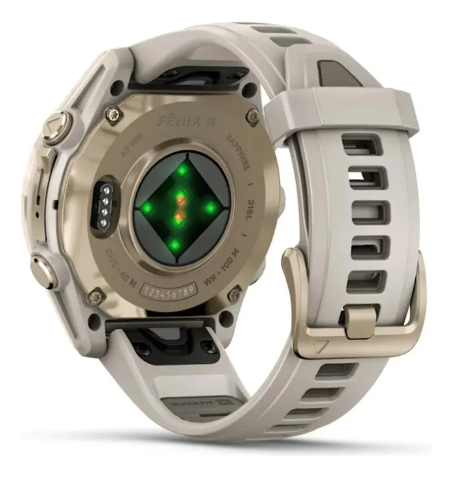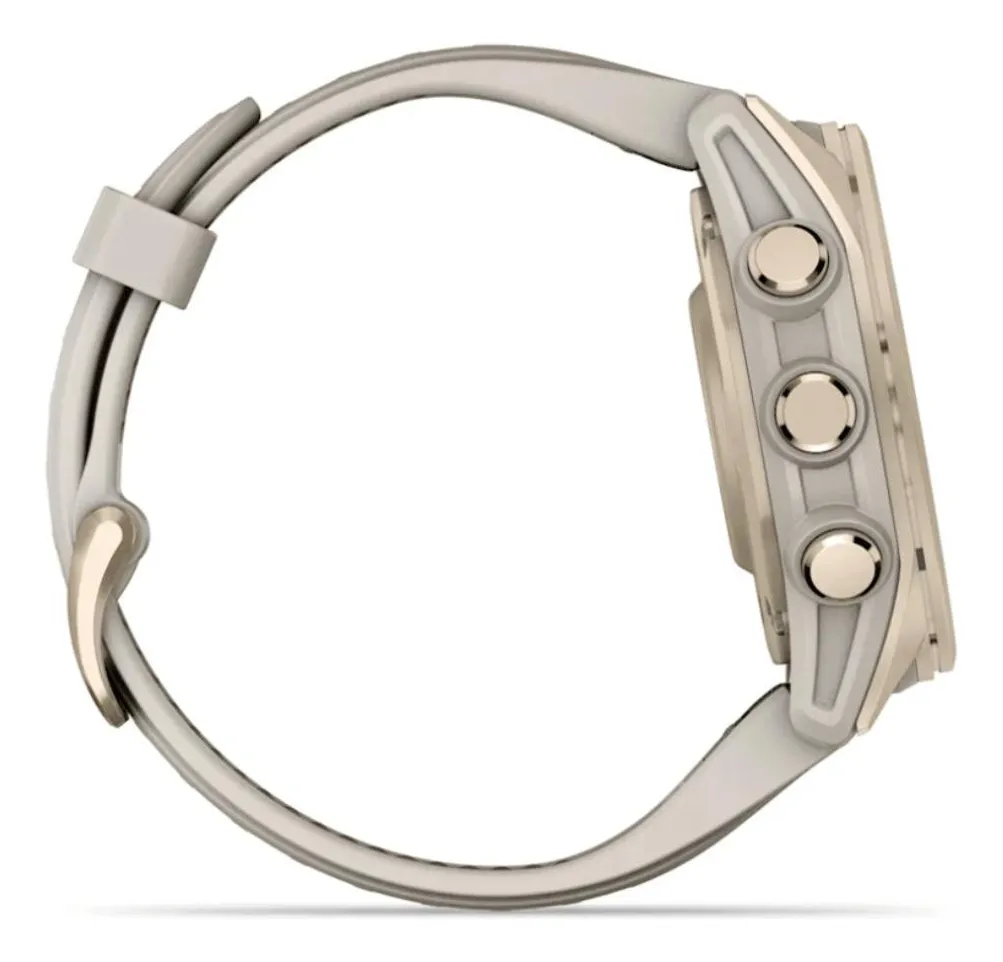 Relógio Garmin Fenix 8S Safira Ouro Suave com Pulseira de Silicone Cinza com Arenito 43mm