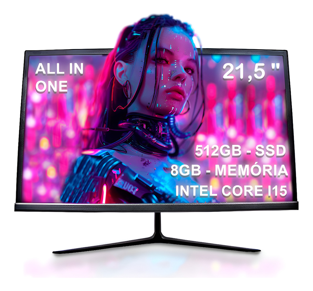 Capacidade total do módulo de memória RAM: 8 GB. | Processador: Intel Core i5. | Tela Full HD Full HD de 21.5". | Pode ser conectado ao Wi-Fi. | Com 6 portas USB 2.0. | Possui porta Ethernet. | Ter um pc tudo em um é sinônimo de praticidade e comodidade.