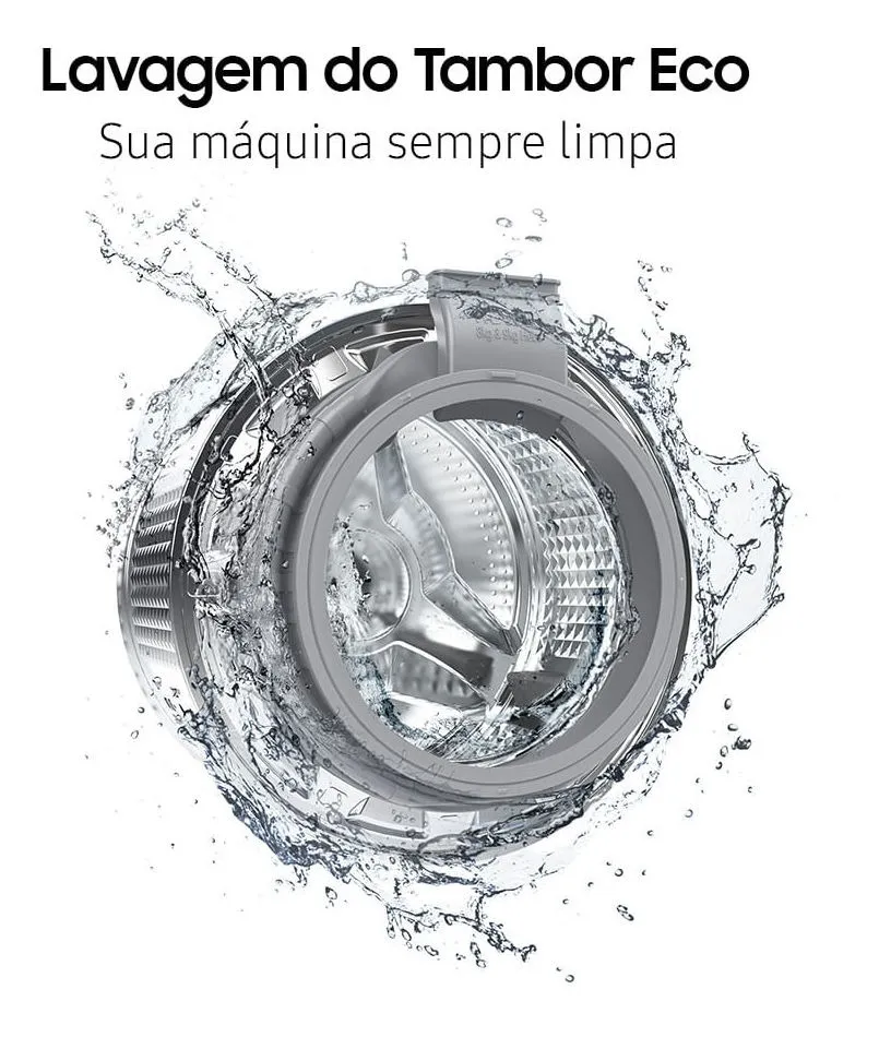 O ciclo de vapor higieniza as roupas com ar quente, removendo sujeiras profundas e eliminando até 99,9% das bactérias e alérgenos. A Lavagem do Tambor Eco mantém a máquina limpa sem o uso de produtos químicos e notifica quando é necessário realizar a limpeza.