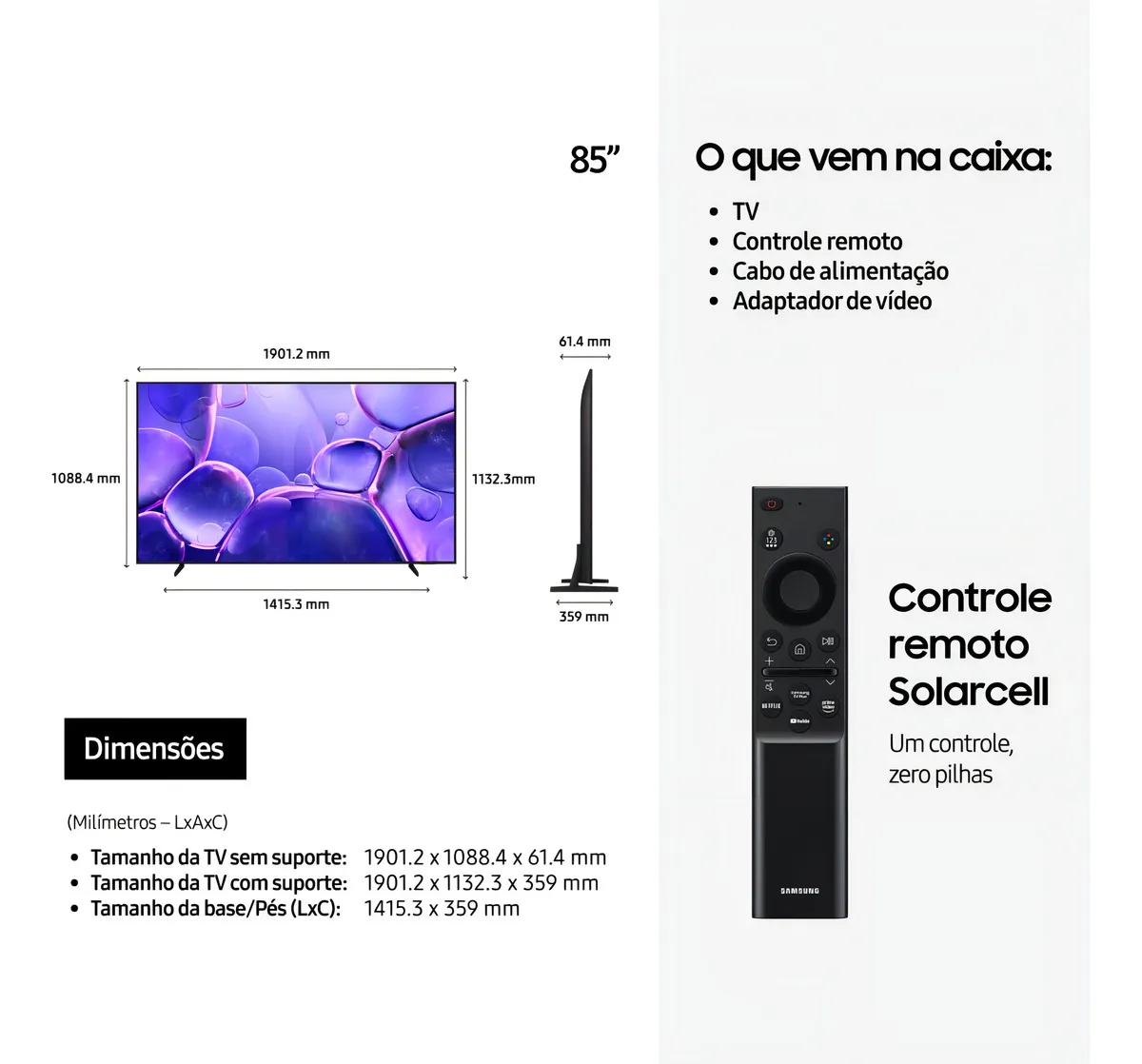 Samsung Smart Tv 85 Crystal Uhd 4k U8100f 2025, Xbox Cloud Gaming, Canais Gratuitos, Alexa