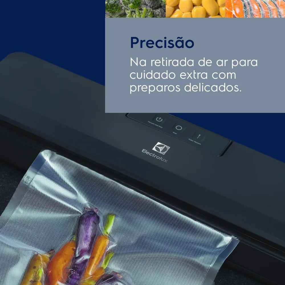 A Seladora a Vácuo Electrolux conta com 3 funções: vácuo e selar, apenas selar e pulsar, permitindo extrair o ar de forma controlada. Ajuda você a preservar facilmente seus alimentos crus ou cozidos, mantendo os sabores e nutrientes frescos.