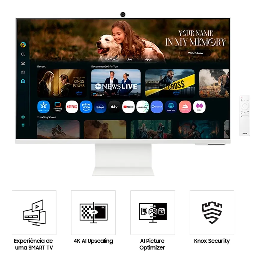 Smart Monitor Samsung M8 32 4k Plataforma Tizen Tap View Usb-c 65w Usb Hub Hdmi Bluetooth Branco
