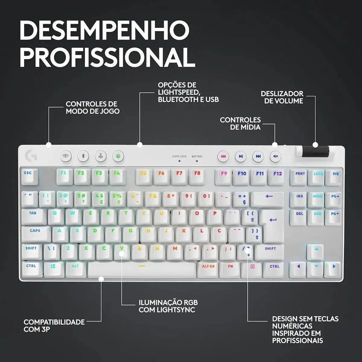 Teclado Gamer Sem Fio Logitech G PRO X TKL – Branco